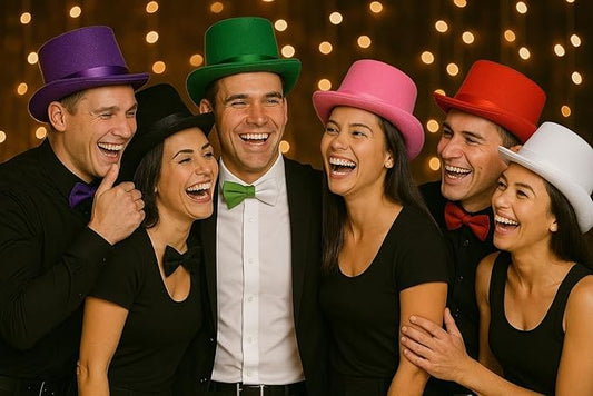 Set of 6 Satin Top Hats with Matching Bows - Perfect for Hen Parties & Stag Dos And Fancy Dress Party