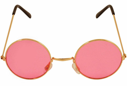 John Lennon Pink Glasses with Gold Frame Hippy 70's 80's Fancy Dress Sunglasses