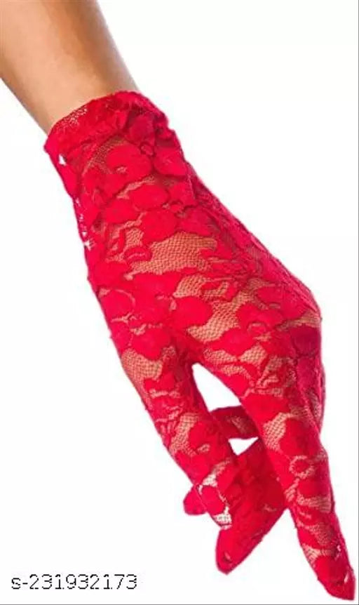 Red Wedding Short Lace Gloves - Elegance Meets Romance