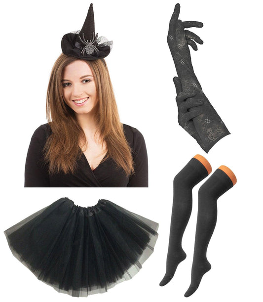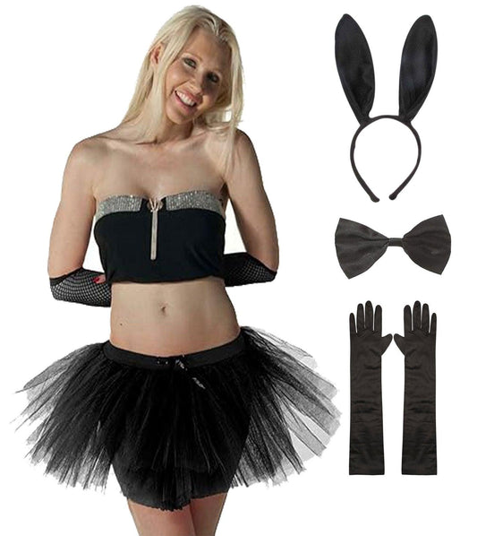 Classic Black Bowler Hat with Schoolgirl Black Wig, White Gloves, and Bow Tie Set - Complete Costume Ensemble for Timeless Style