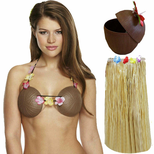 Ladies 80 Cm Hula Grass Skirt Coconut Bra Cup Hawaiian Beach Summer Party Set