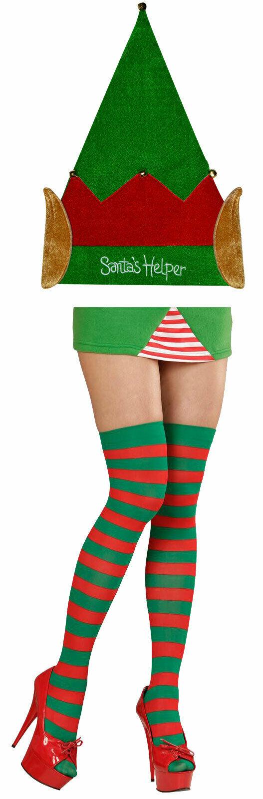 Elf Santa Helper Hat Striped OTK Socks Christmas Xmas Party Fancy Dress Set