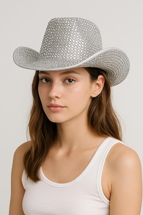 Set of 4 Silver Sequin Disco Cowboy Hats – Glittering Party Hats for Themed Events, Festivals, Hen Parties, Stag Dos, and Fancy Dress Costumes