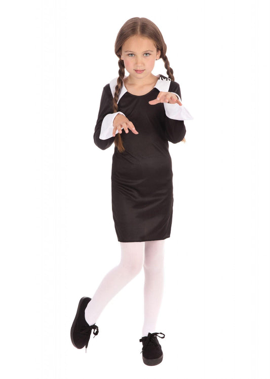 Girls Creepy Schoolgirl Fancy Dress Halloween The Addams Family Kids Costume New
