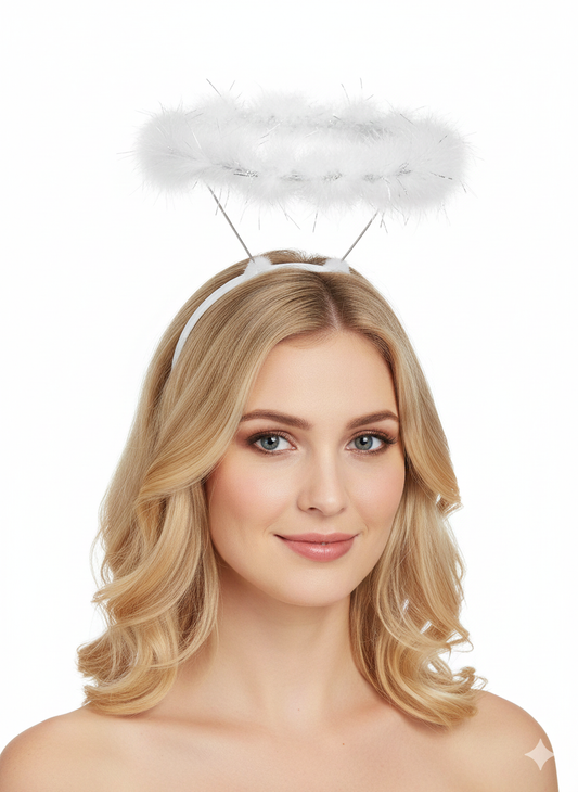 Fluffy White Angel Halo Headband with Sparkling Tinsel – Adult Fancy Dress Accessory