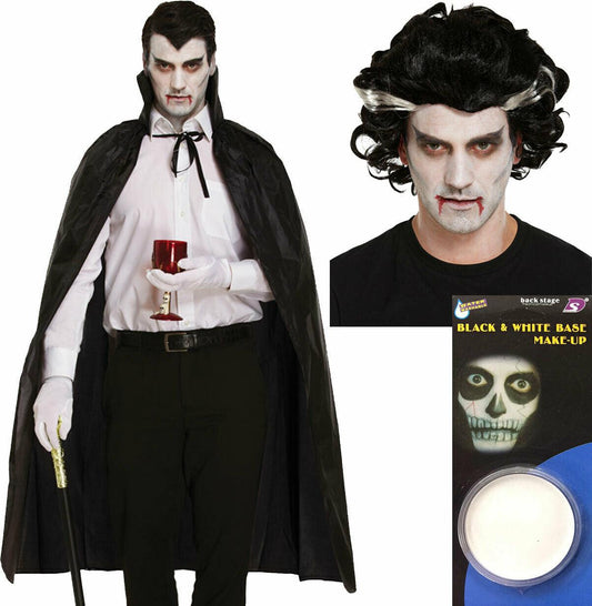 Adults Black Cape Vampire Male Wig Face Paint Halloween Vampire Costume