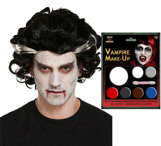Adult Vampire Male Wig with Multi Palette Make Up Halloween Party Set
