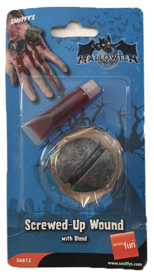 Screwed up Wound with Blood Halloween Scary Zombie Party Makeup Prop