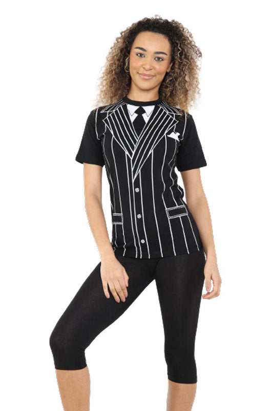 Unisex Gangster Printed T-shirt Black Short Sleeves Novelty Stag Do Fancy Dress Party Top