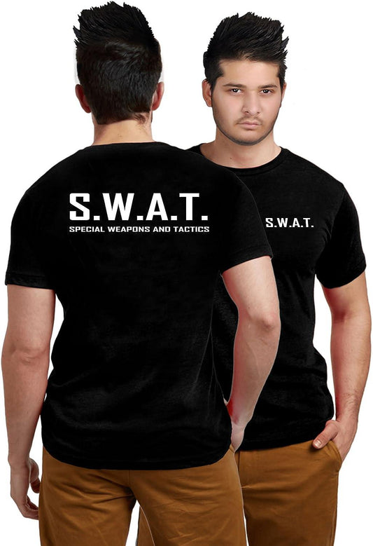Adults SWAT Printed T-Shirt - Black Short Sleeves: Unisex FBI Tactical Military Fancy Dress Costume Top