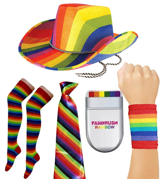 Rainbow Cowboy Hat Tie Fan Brush Socks Wristband Gay Pride Party Fancy Dress
