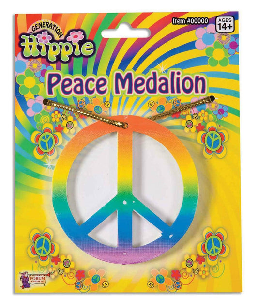 Rainbow Hippie Peace Sign Medallion 70S Flower Groovy Fancy Dress Accessory