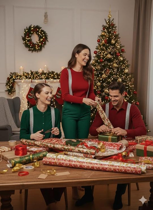 Labreeze Santa Helper Outfit – Santa Hat, Red Suspenders & Red/White Tights – Adult Christmas Costume Accessories