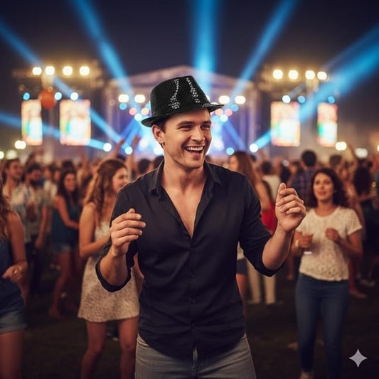 Labreeze Black Sequin Gangster Hat (Adult) – Sparkly Fancy Dress Fedora for Christmas & Party Costumes