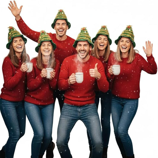 Labreeze Christmas Tree Hats for Adults with Star Topper – Festive Novelty Party Hats, 6-Pack