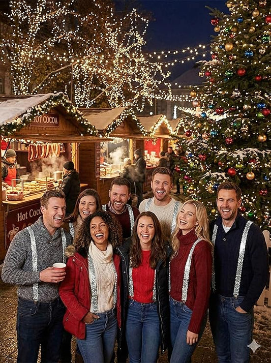 Labreeze Pack of 8 Silver Sequin Braces – Adjustable Adult Glitter Suspenders for Christmas Parties