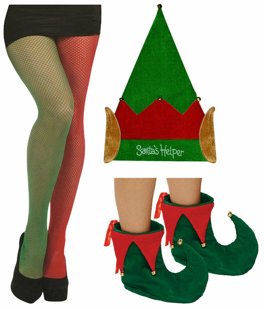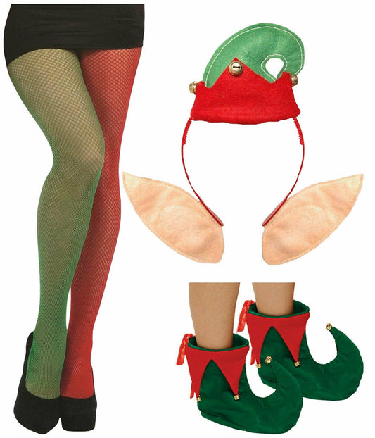 labreeze Women’s Red and White Christmas Tights & Elf Hat with Ears Set – Festive Elf Fancy Dress Accessories