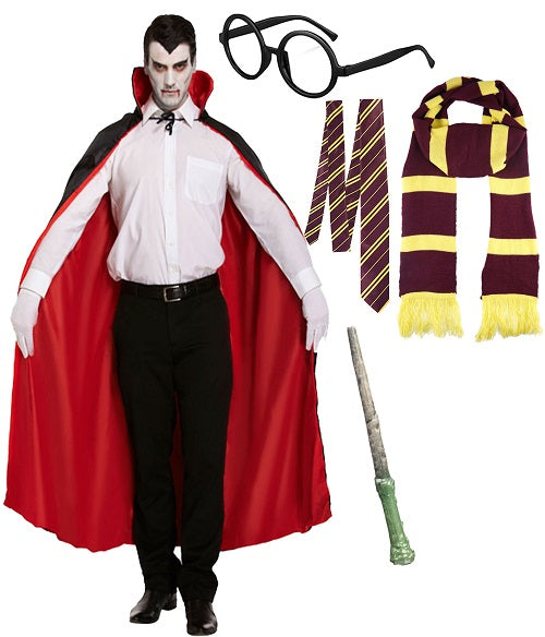 Adult Reversible Cape with Scarf, Tie, Glasses, and Wand - Complete Costume Set for Elegant Dress-Up and Themed Events