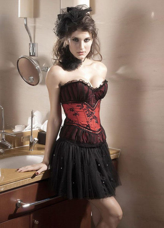 Hot Red&Black Lace Overlay Corset