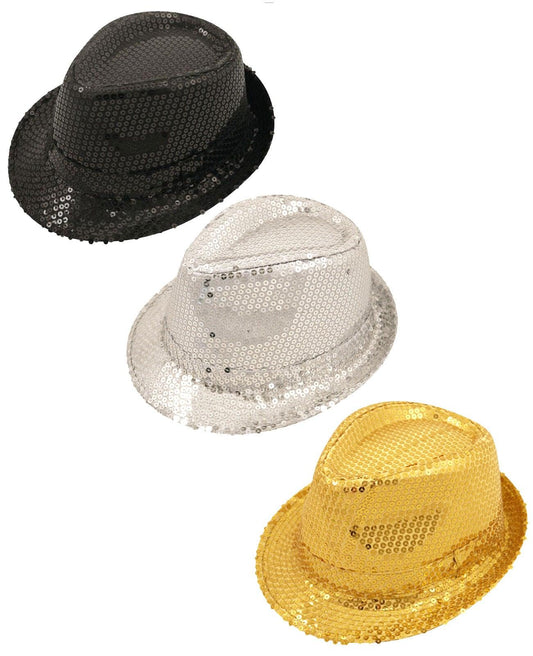 Unisex Sequin Gangster Hat Fedora Trilby Sequin Cap Hats Dance Party