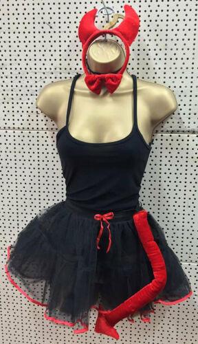 Ladies Girls She Devil tutu skirt vest horns and bow tie set Fancy Dress