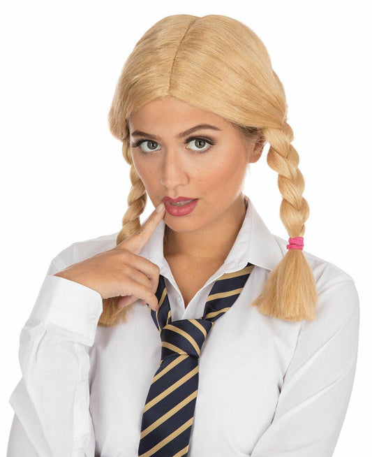 Ladies School Girl Wig Blonde Plaits Halloween Horror Fancy Dress Accessory