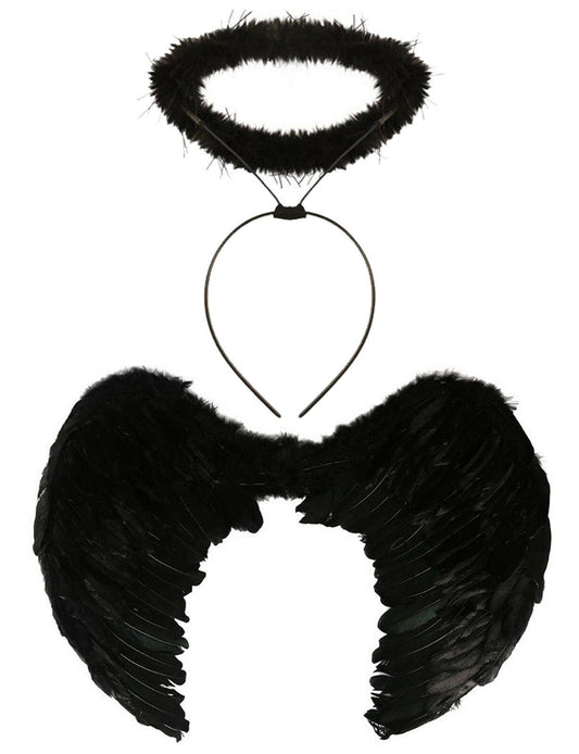 Large Real Feather Wings Black Fluffy Halo Halloween Fairy Party Fancy Dress