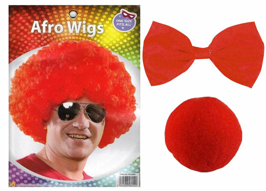 Comic Relief's Red Nose Day Afro Wig Bow Tie Sponge Clown Nose Fancy Dress Set