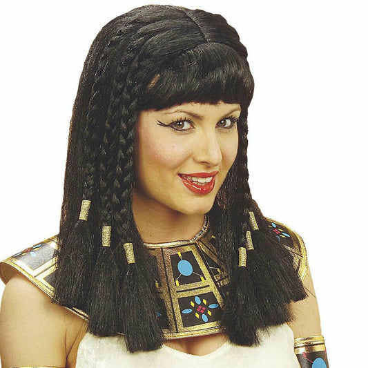 Ladies Girls Long Black Braided Queen of The Nile Cleopatra Egyptian Party Wig