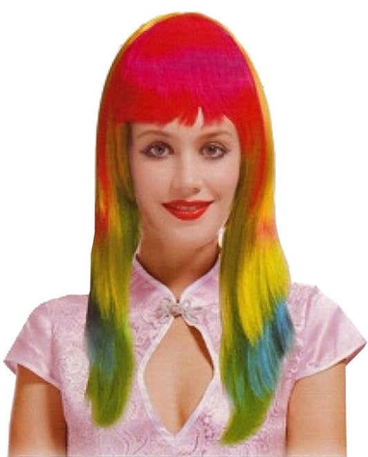 Ladies Rainbow Neon Fringe Layered Wig Straight Hair Womens Fancy Dress Wig