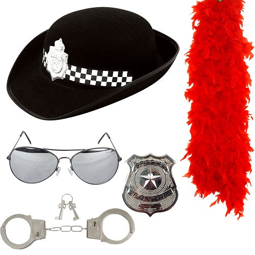 Adult Policewomen Costume Set - Hat, Braided Whip, Badge, Glasses, Cuff for a Stylish Law Enforcement Look