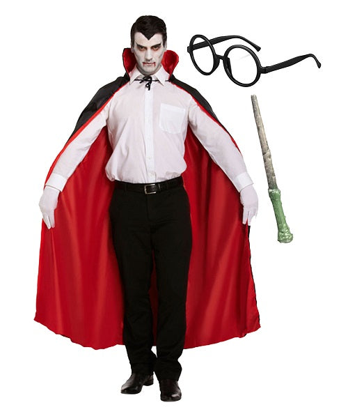 Adult Reversible Cape with Glasses and Wand - Versatile Costume Set for Magical Dress-Up and Themed Events