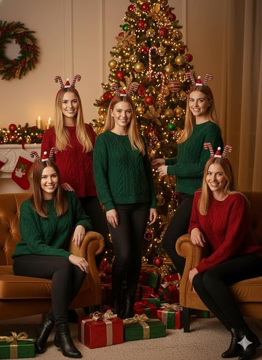labreeze Pack of 5 Tinsel Candy Sticks with Xmas Hat Christmas Headbands – Festive Hair Accessories for Women