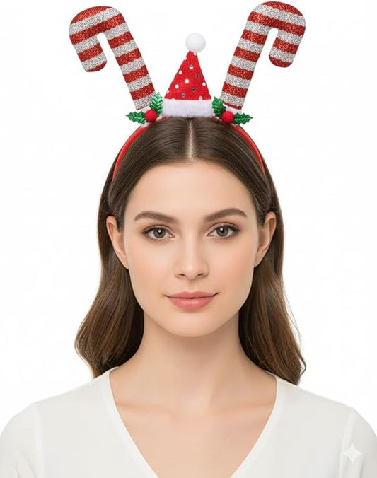 labreeze Tinsel Candy Stick with Xmas Hat Christmas Headband for Women – Festive Holiday Hair Accessory