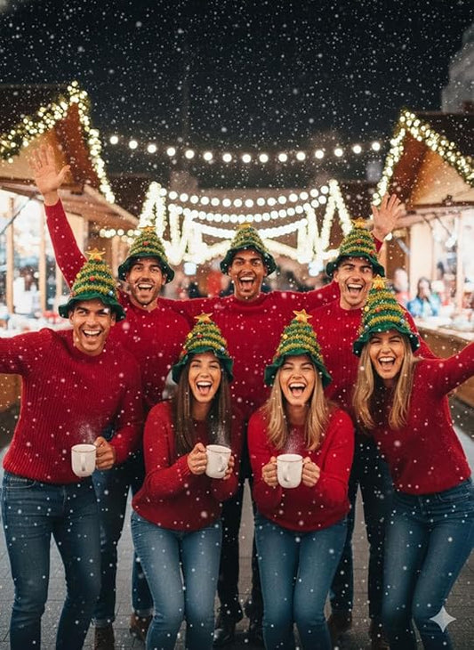 Labreeze Christmas Tree Hats for Adults with Star Topper – Festive Novelty Party Hats, 6-Pack