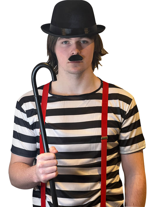 Labreeze Adults Charlie Chaplin Fancy Dress Costume Set – Black Bowler Hat, Inflatable Walking Stick, Bow Tie & Moustache – World Book Day & World Book Week