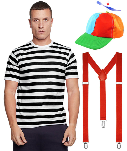 Labreeze Men's Black & White Striped T-Shirt, Beret Hat & Braces – World Book Day & World Book Week Fancy Dress Costume