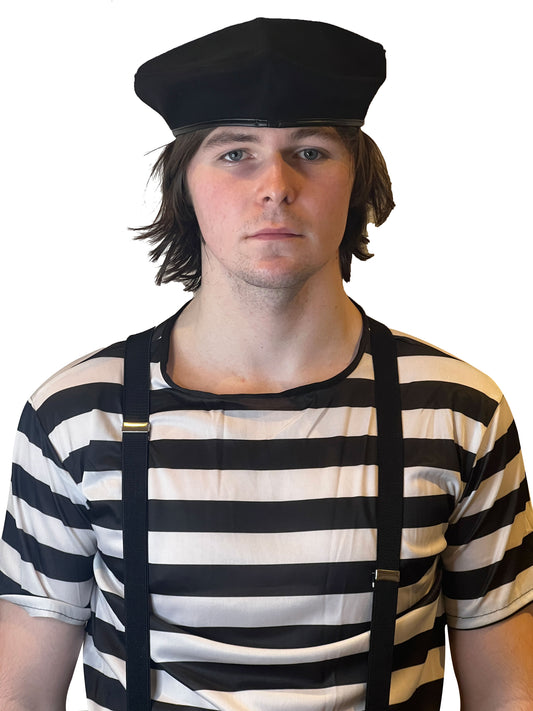 Labreeze Men's Black & White Striped T-Shirt, Beret Hat, Garlic & Braces – World Book Day & World Book Week Fancy Dress Costume