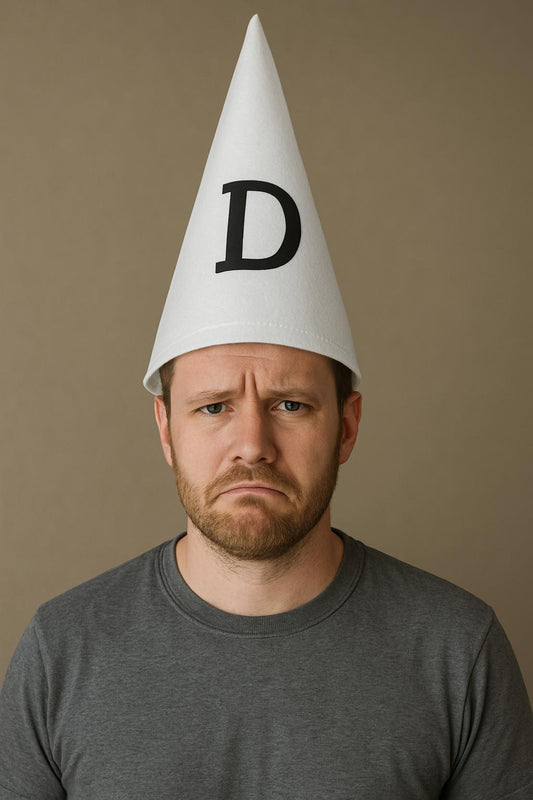 labreeze Mens Dunce Hat – Adult Cone Hat with DUNCE Print – Funny Fancy Dress Headwear for Retro School Costume, Book Day, Teacher Outfit, Comedy Skits and Parties