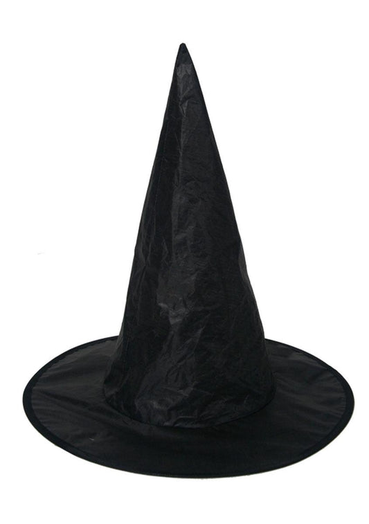 Adult Witch Hat Black Shiny Fabric - Halloween Costume Accessory