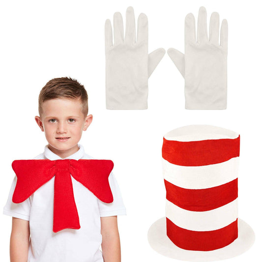 Kids Child Cat in Hat Gloves & Bow Tie Book Week Fancy Dress Accessories