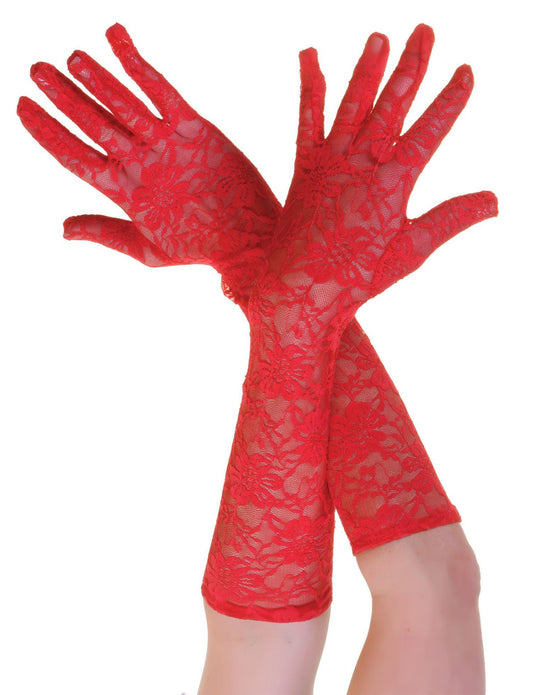 Red Lace Long Gloves with Cigarette Holder - Evil Lady Halloween Cosplay Book Week Dress Up Set