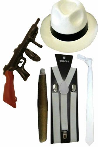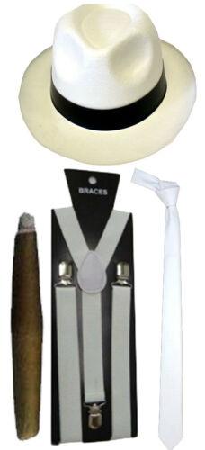 1920s GANGSTER FANCY DRESS AL CAPONE PIMP CIGAR MENS WHITE HAT TIE BRACES