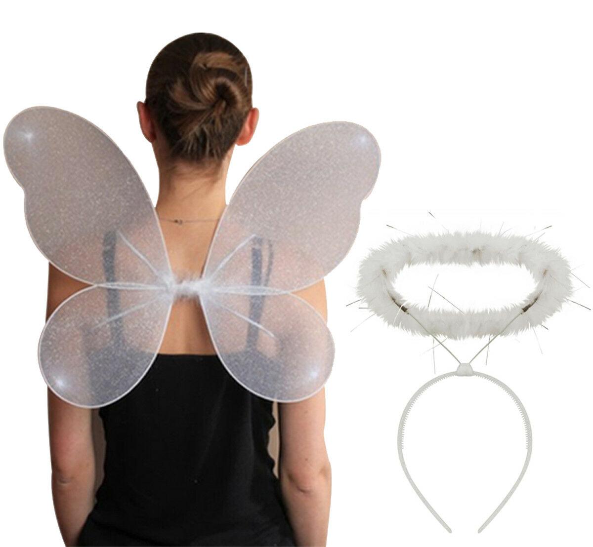 2 Pc Set White Halo Net Fairy Wings Butterfly Wand Angel Fairy Land Costume