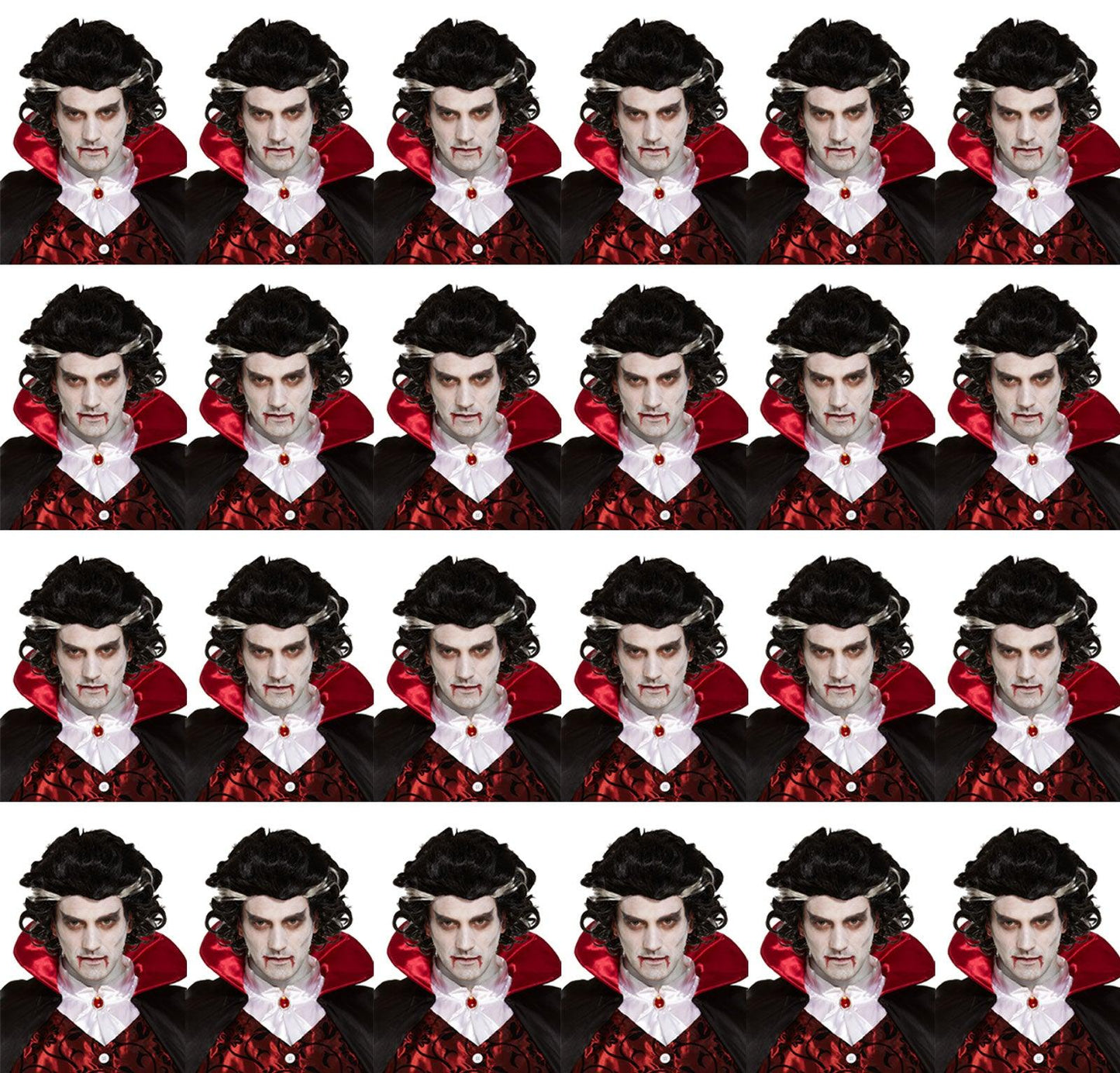 24x Vampire Wigs for Men - Two-Tone Black Wig with White Streaks - Halloween Spooky Scary Fancy Dress Party Costume Accessories