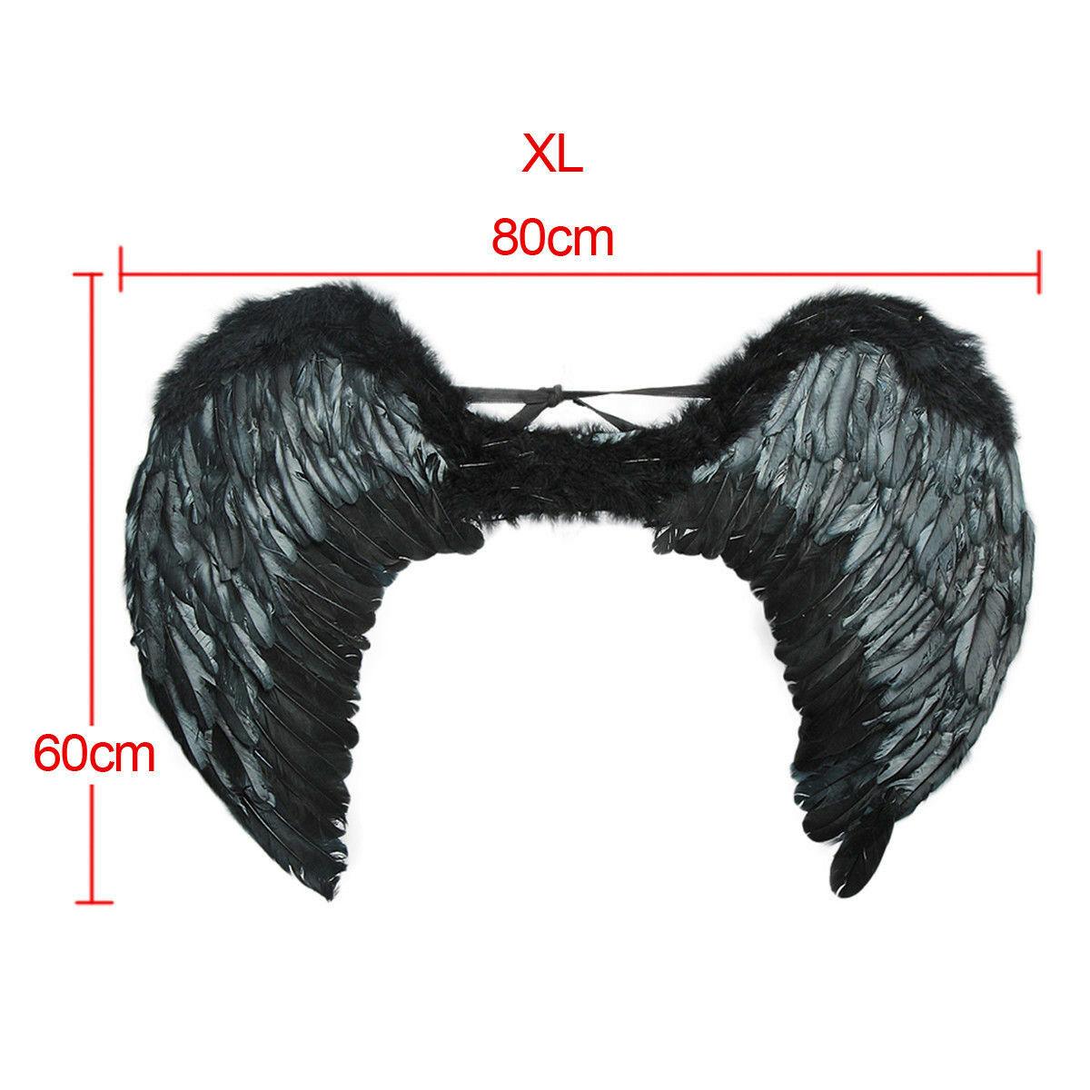 Adults Angel Black Feather Wings Halloween Fancy Dress Hen Stag Do Party Outfit