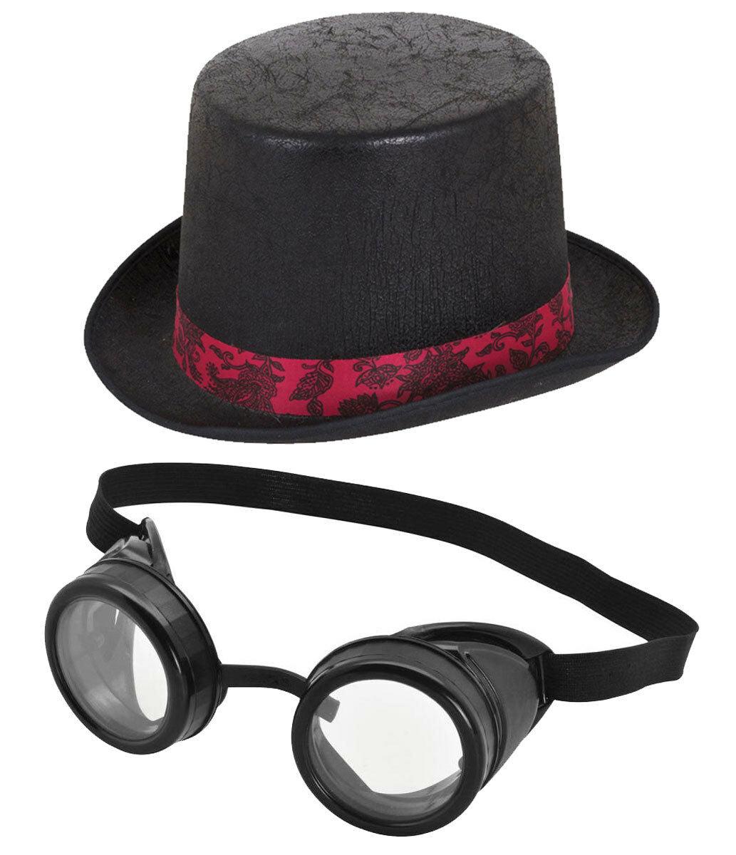 Steampunk Adventure Set - Black Top Hat with Black Frame Goggles for Adults