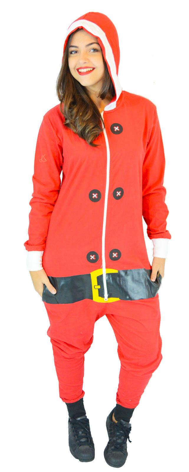Adults Christmas Red Santa Claus Outfit Fancy Dress Jumpsuit Playsuit