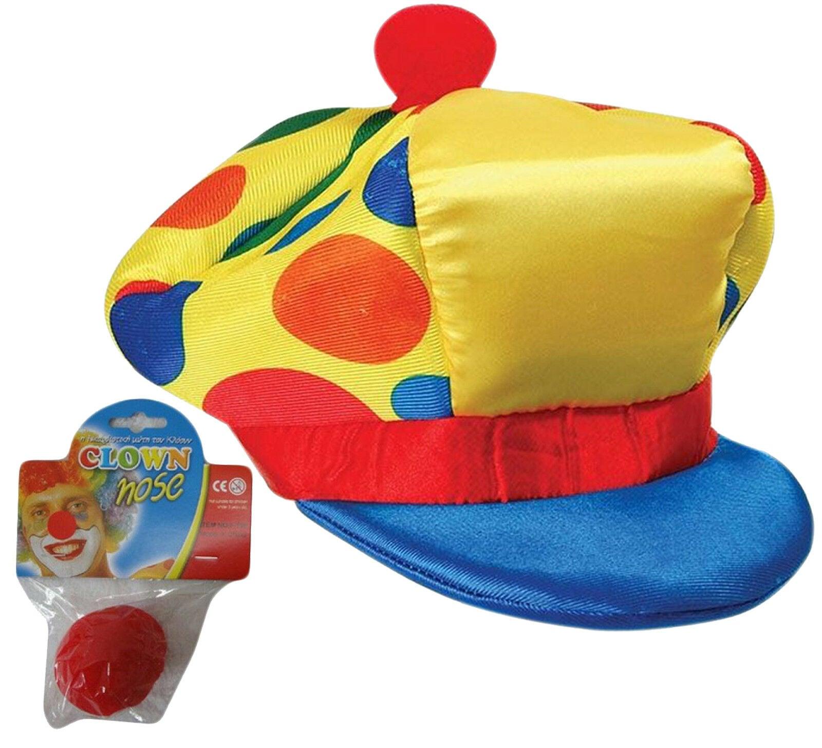 Adults Clown Kipper Hat with Nose Comedy School Party 2 Pcs Fancy Dress Set
