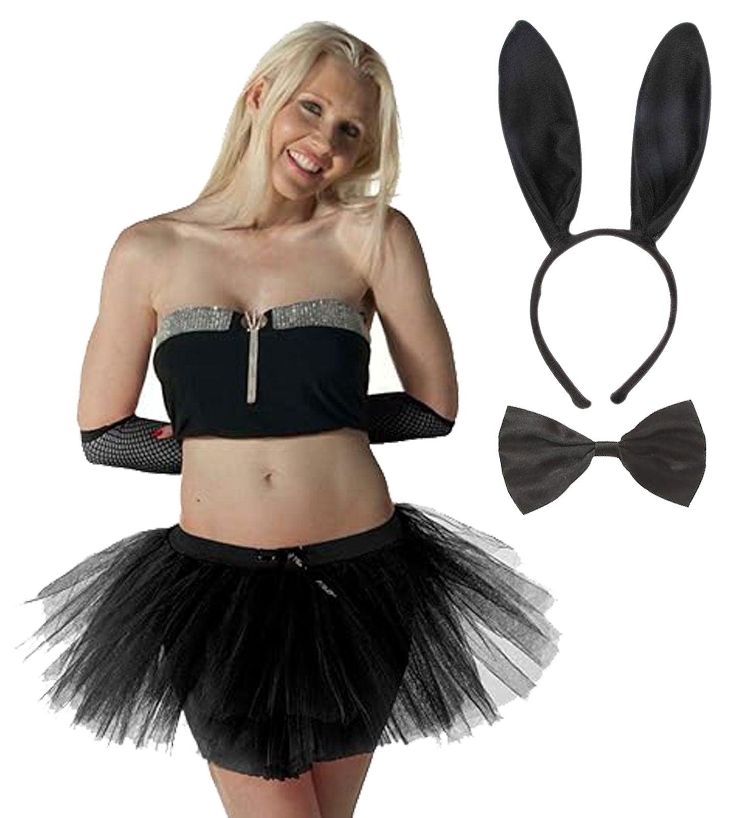 Black 3-Layer Tutu Skirt, Bunny Ears, and Bow Tie - Halloween Scary Spooky Bunny Fancy Dress Costume
